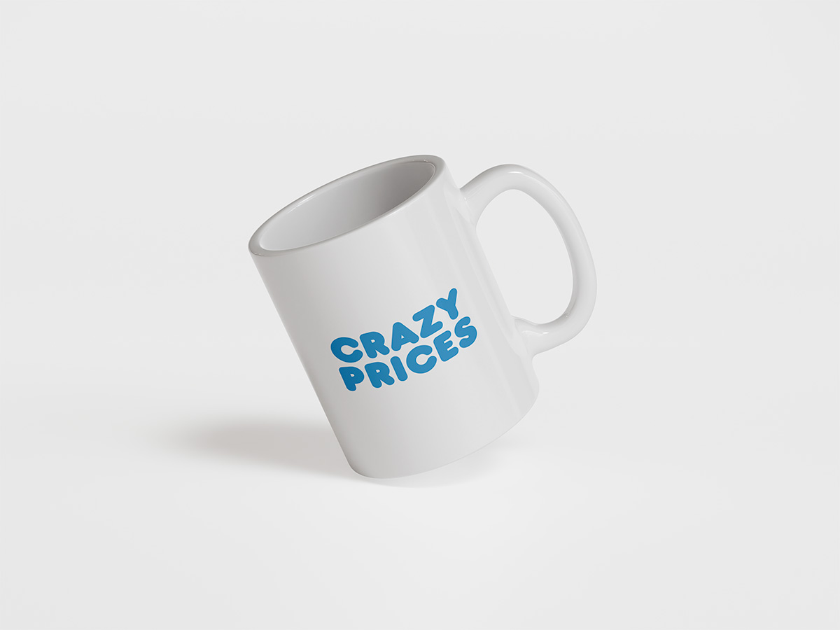 Crazy Prices Retro Mug. Clean, minimal design. Premium mugs with a smooth ceramic finish and straight walls.